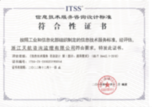 ITSS信息技術服務咨詢設計標準 符合性證書